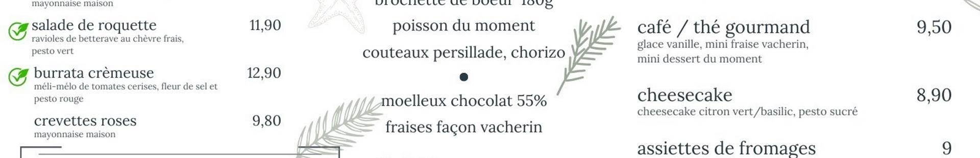 À la carte: homemade seafood sauteed sauerkraut, but also grilled meats, and of course fresh fish and seafood straight out of the nets of local fishermen, oysters coming directly from Mrs Andrée's home to la Plaine Sur-Mer, tasty mussel specialties (in season) which is one of the chef's must-haves!